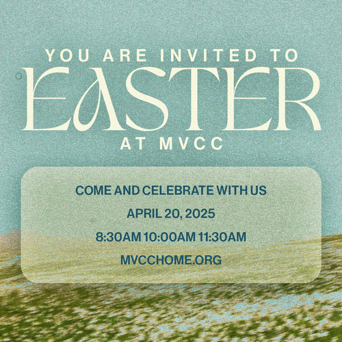 Join us for Easter at MVCC! From the moment you arrive, you'll experience a welcoming environment, powerful worship music, and a timely message from Pastor Mike Maiolo. You'll also find a safe place where you can explore your faith and beliefs, and connect with other people. Food and fun activities will be available after each service. So, this Easter, come as you are and invite your friends and family with you!
